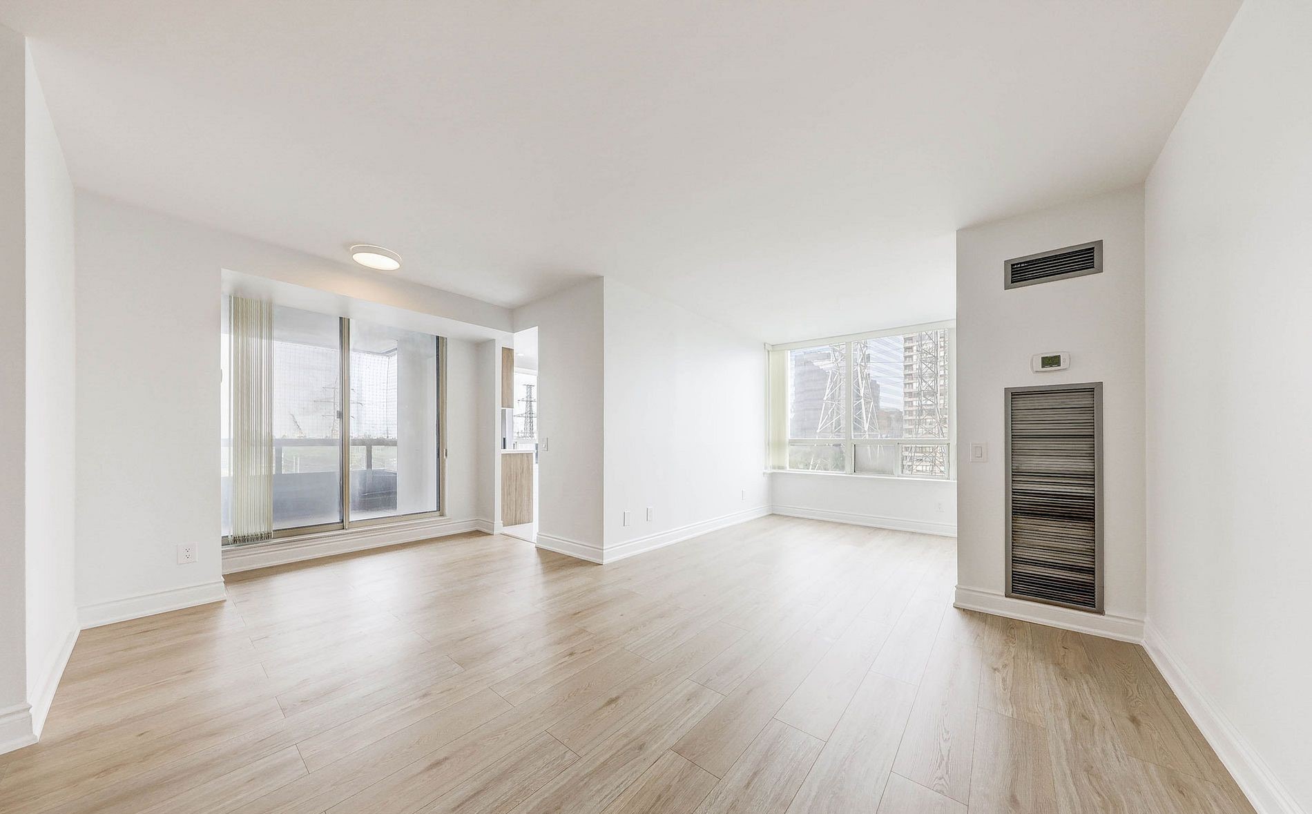 Stunning Fully Renovated Corner Unit at the Prestigious Vogue Condos Yonge & Finch. Experience luxury living in the heart of North York at the highly sought-after Vogue Condo building, ideally situated just steps from Yonge/Finch Subway Station, Finch Bus Terminal, restaurants, shops, banks, and groceries. This prime location is also within the prestigious Earl Haig Secondary School zone.This spacious 2-bedroom plus solarium corner unit offers 1,043 square feet of beautifully updated interior space, along with a private balcony and large windows that provide stunning, unobstructed views.The entire unit has been meticulously renovated with high-end finishes and sophisticated design. It features modern laminate flooring and stylish mouldings throughout, complemented by smooth ceilings that enhance the clean, contemporary look. The chef-inspired kitchen is a showpiece, complete with brand-new cabinets, sleek quartz countertops, a designer backsplash, large ceramic tile flooring, pot lights, newer stainless steel appliances, and a bright eat-in area framed by large windows.Both bathrooms have been completely transformed, featuring new vanities, new toilets, and chic black hardware that add a touch… Read Moreof modern elegance. The entire unit has been freshly painted, making it completely move-in ready.This sun-filled corner suite offers luxurious comfort, an unbeatable location, and access to top-tier schools a rare opportunity not to be missed.Read Less