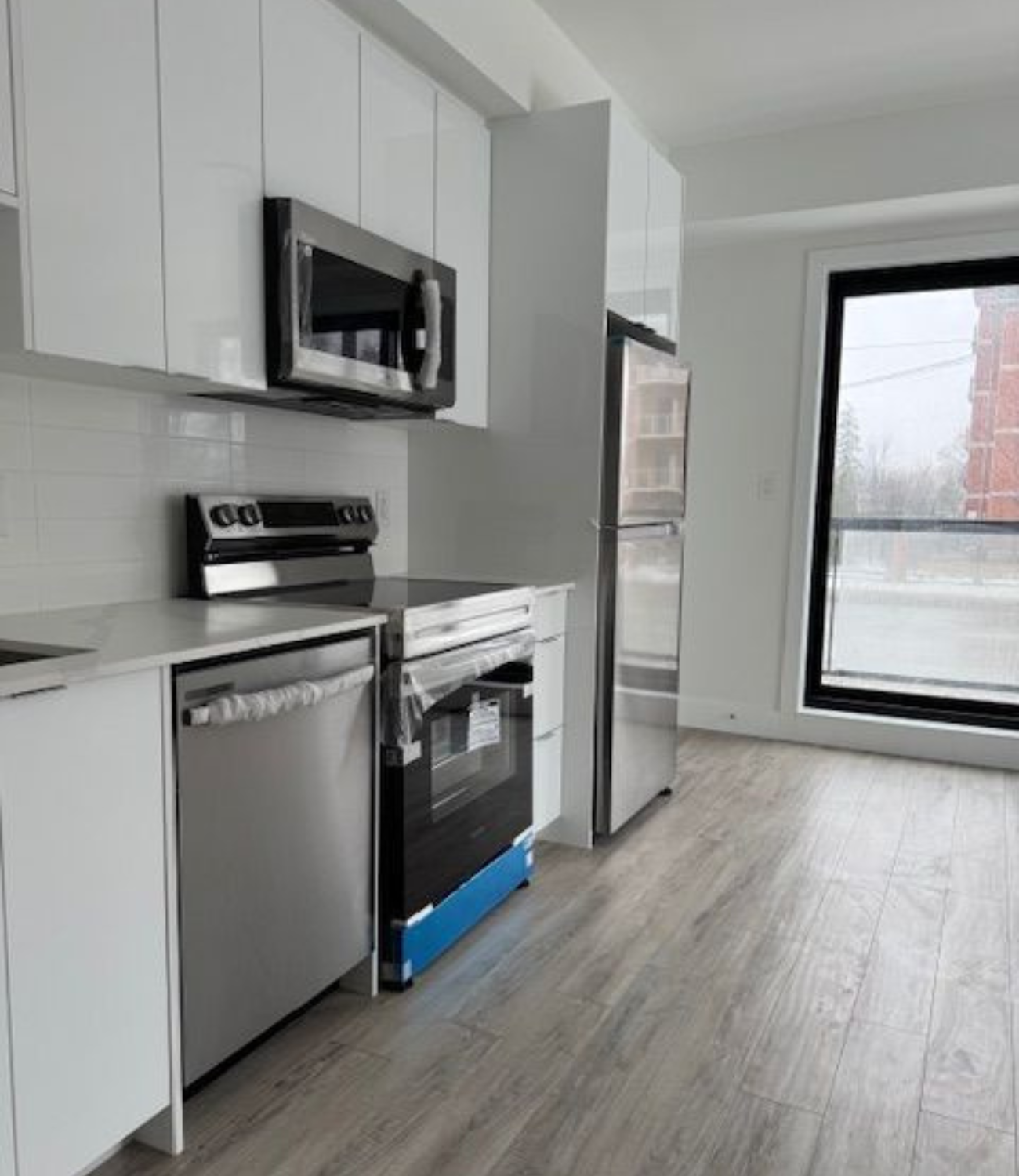 The Boho, Niagara's newest boutique stacked town development located just 5 minutes from The Falls. Step into luxury inside this open concept 2 bedroom, 2 bathroom corner suite. 9-foot smooth ceilings, modern kitchen with chrome fixtures, stainless steel appliances, quartz countertops, flat panel cabinetry extended to ceiling height, tiled backsplash and wide plank designer flooring. Living room with walk out to private patio. Bedrooms feature wood flooring, spacious closets with shelving. Primary bedroom features ensuite bath with 12 x 24 porcelain tiles, undermount sink. Ensuite laundry with stacked washer dryer. Steps from public transit, minutes to grocery, retail and QEW. **EXTRAS** Samsung appliance package, stacked washer dryer.